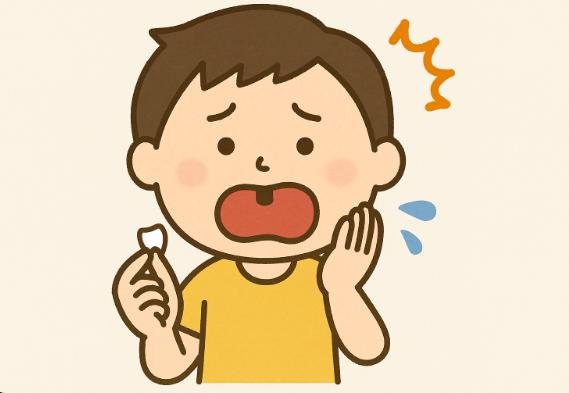 さすがに当の本人も、抜けた前歯を手に呆然自失…