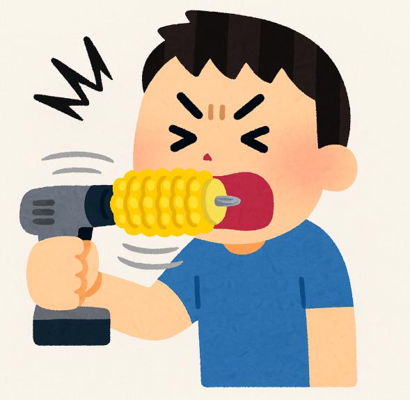 電動ドリルって、トウモロコシじゃなくて壁とかに使うもんやろ?
